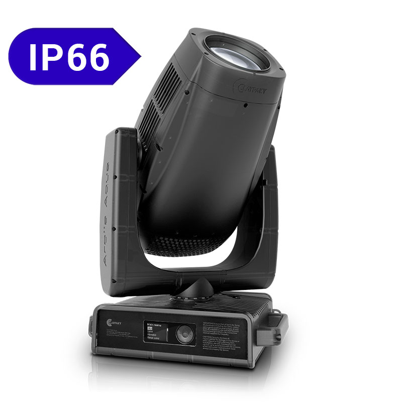 Der AROLLA AQUA ist das Spitzenmodell der wetterfesten Claypaky Leuchten und bietet eine IP66 Schutzklasse.