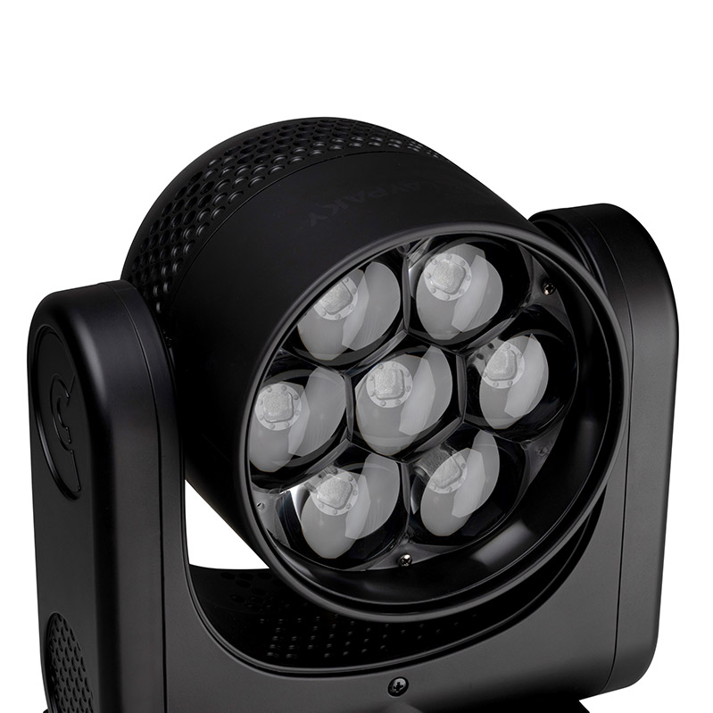 Der MINI-B ist das kleinste LED-Wash- bzw. Beamlight, welches Claypaky bisher auf den Markt gebracht hat. Obwohl nur 6,5kg leicht und 34cm hoch überzeugt er, ebenso wie der K15 und K25 der HY B-EYE Serie, als Washlight mit exzellenten Farben, einer äußerst homogenen Ausleuchtung, einem variablen CTO, einem eindrucksvollen Zoom-Bereich von 4°- 55° und vor allem mit seiner enormen Schnelligkeit.