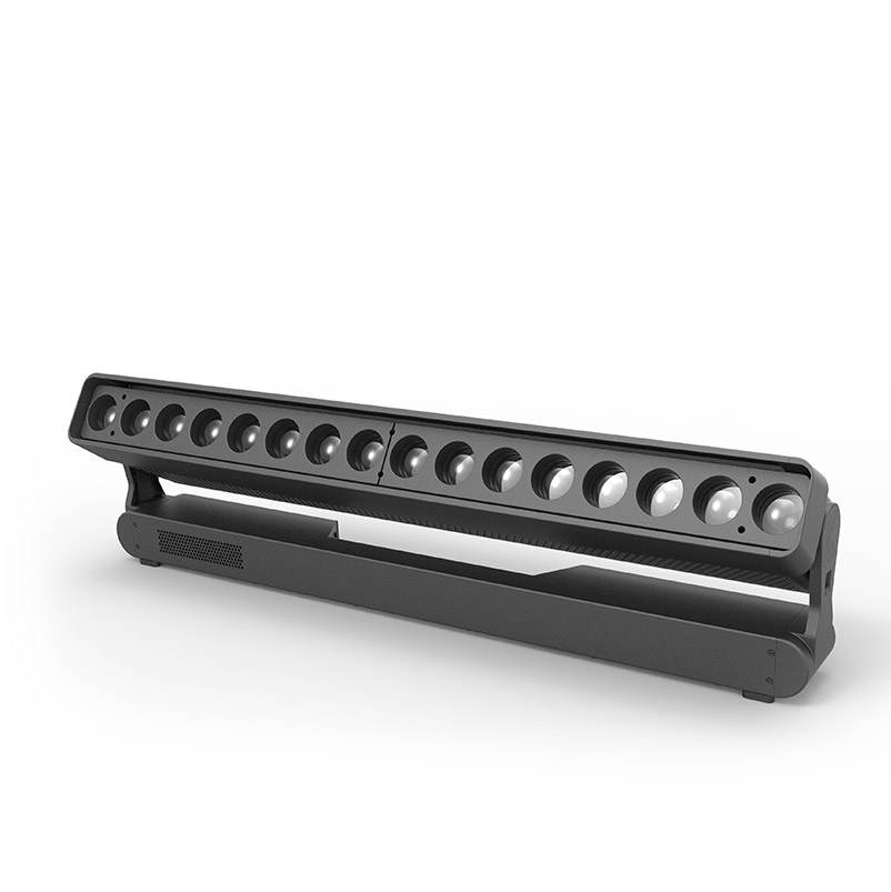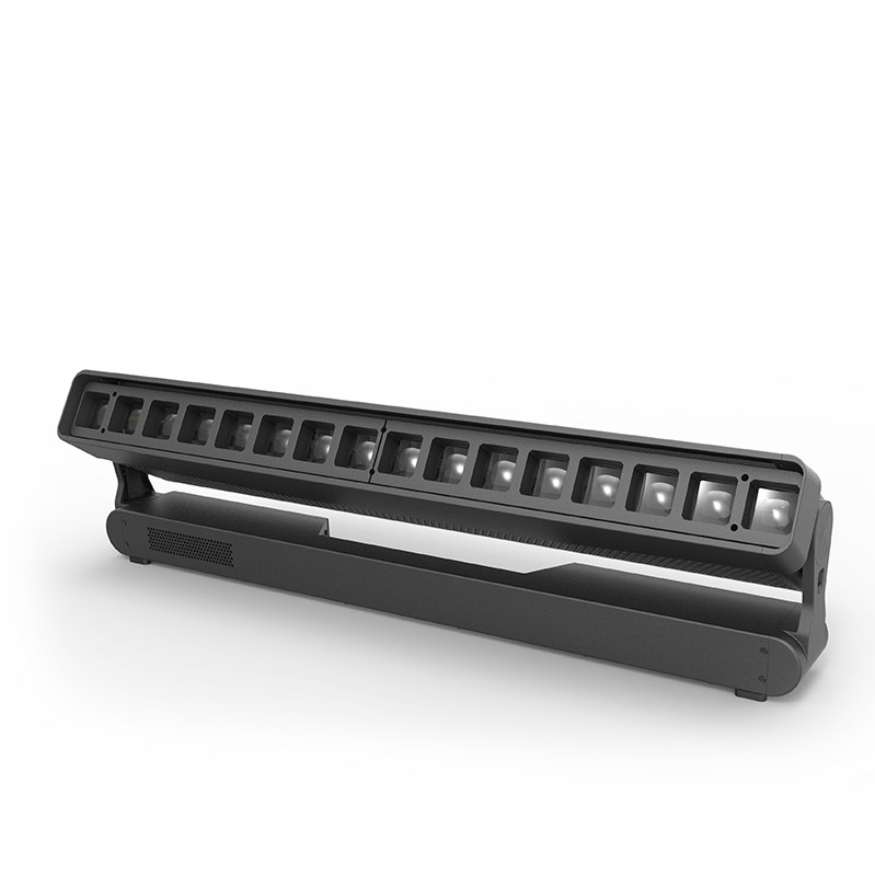 Angetrieben von 16 Osram 40W RGBW-LEDs, ermöglicht diese leistungsstarke und multifunktionale LED-Bar eine dynamische Steuerung jeder einzelnen LED und erzielt so eindrucksvolle Pixel-Mapping-Effekte. Der User kann die Farb-, Dimm- und Strobefrequenz jeder LED einzeln oder gemeinsam steuern. Mehrere Bars können nahtlos in einer Linie oder einer Matrix angeordnet werden, während der Abstand zwischen den LEDs immer gleichbleibt, um ein homogenes Bild zu erzeugen.