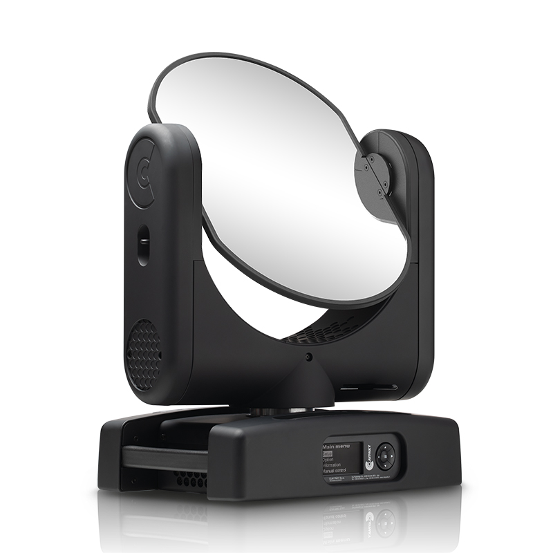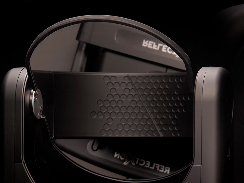 Der REFLECTXION hat einen hoch reflektierenden 390 x 280 mm Spiegel, welcher bis zu 99% der Lichtstrahlen ohne Farbabweichungen reflektiert. Der Spiegel leitet Beams aller Bühnenscheinwerfer mit derselben Intensität weiter, wie er sie erhält - diese Eigenschaften gelten selbstverständlich für beide Seiten des Spiegels. Er bietet 540° im PAN und einzigartige, konstante TILT Bewegungen mit einstellbarer Geschwindigkeit.