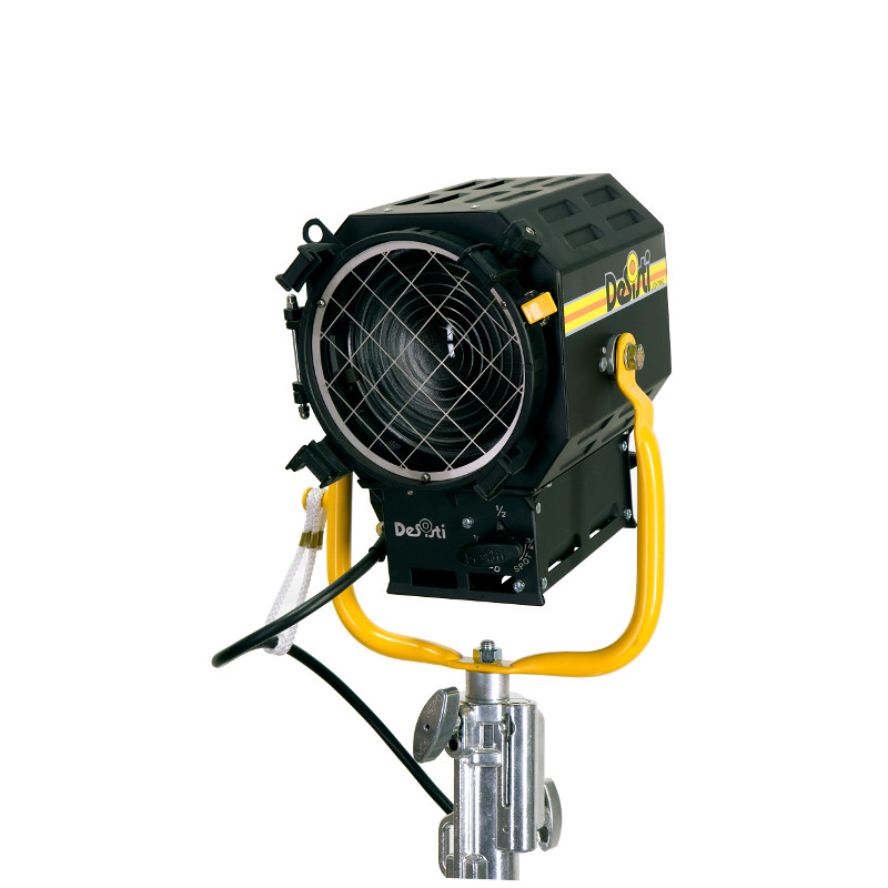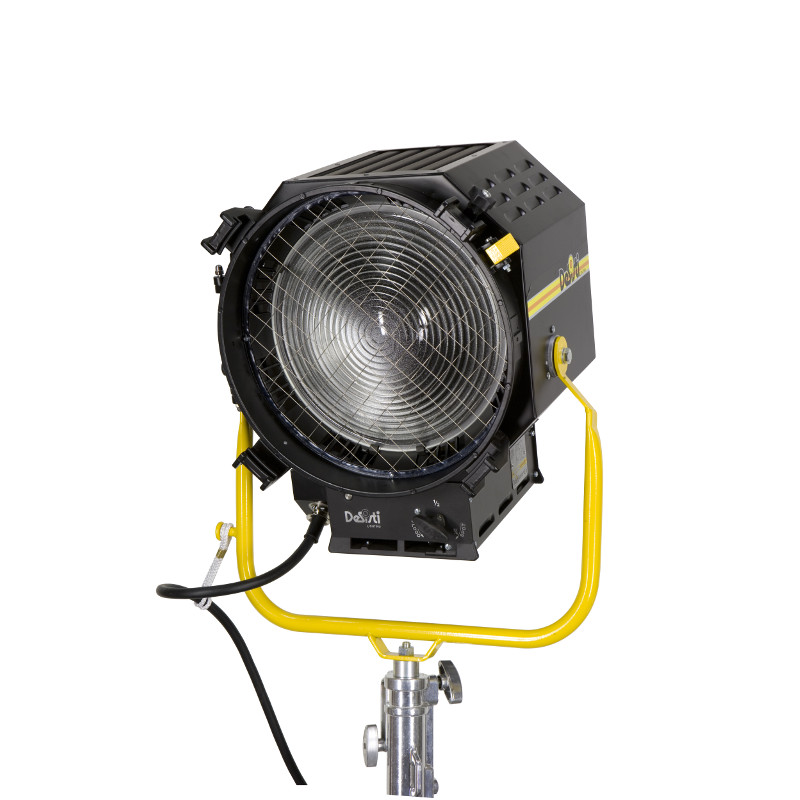 Der Leonardo 2 KW mit einer 250mm Fresnellinse. Durch den G38 Sockel kann er mit CP73 bestückt werden.