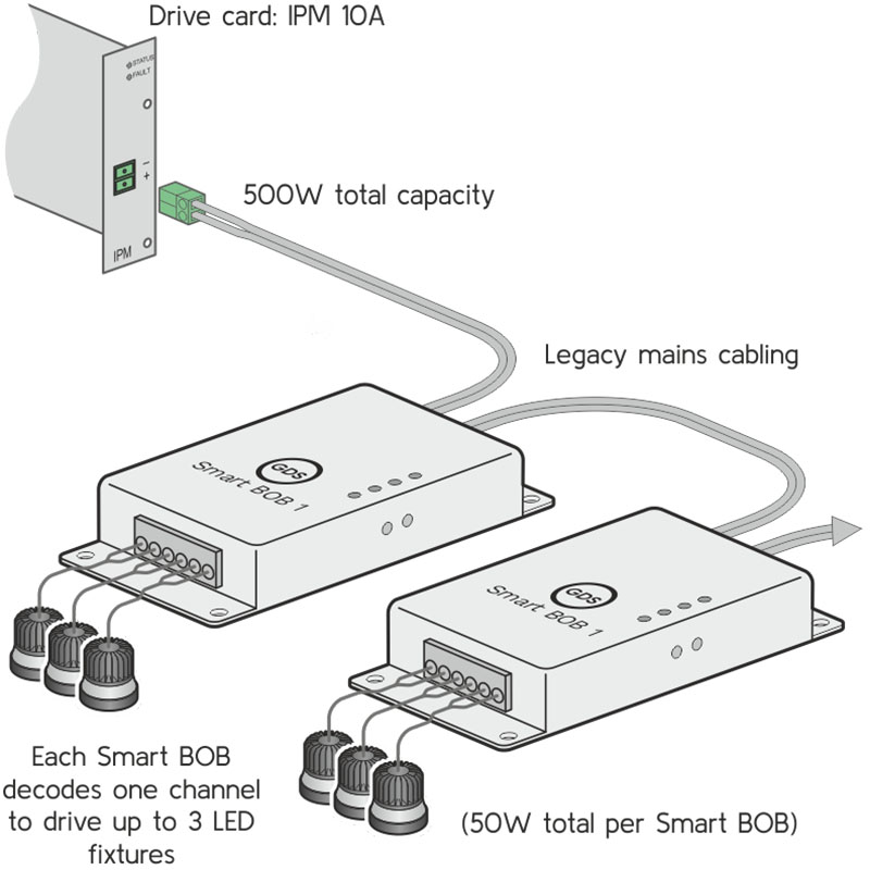 • Versorgt bis zu 500W über alle angeschlossenen Smart BOBs