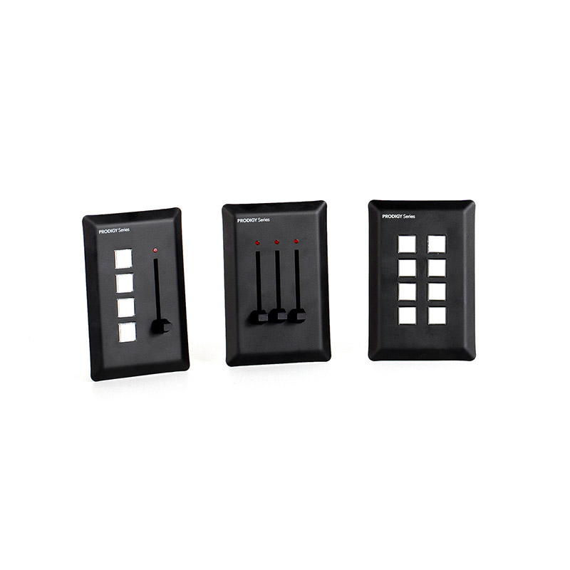 Prodigy is a multi-protocol lighting controller that seamlessly combines DMX/ RDM, DALI and Art-Net devices, all within a single interface. The Combi Outstation includes 4 buttons and 1 fader to deliver intuitive lighting control across multiple outstation locations and installation environments.