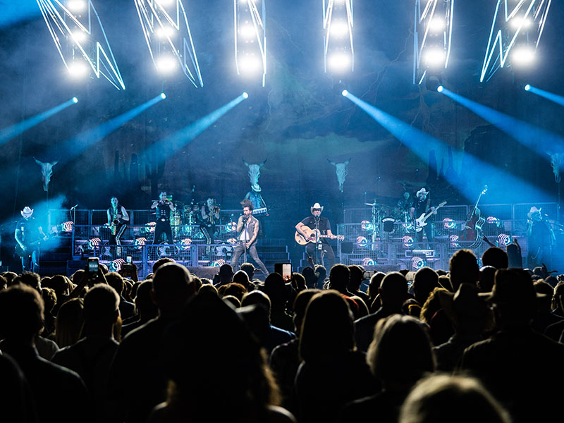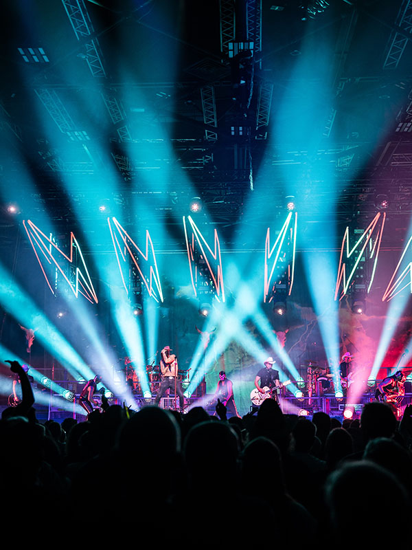Nicht nur musikalisch, auch im Bühnendesign wird der Country-Style verkörpert, sodass der langjährige Produktionsdesigner Jonas König (Koeniglicht: koeniglicht.de) auch 2023 direkt wusste, was er zu tun hat: „Bei The BossHoss ist immer der echte Rock’n’Roll-Look gefragt. Kein cleanes Bühnendesign mit avantgardistischen Formen, sondern viel Deko und insgesamt ein eher raues Erscheinungsbild“, hält Jonas fest.