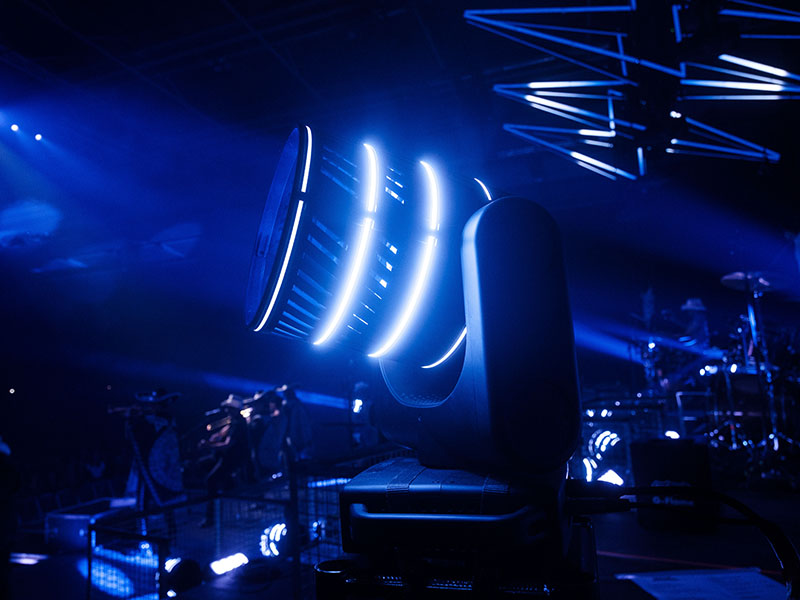 „Sehr schön ist auch, dass man aufgrund des Tophats die Lichtquelle selbst nicht sieht. Schaut man seitlich in die Lampe, scheint das Licht aus dem Nichts zu kommen. Ein ungewohnter Anblick, der eine überraschend starke Wirkung hat. Doch auch die Beams selbst sind sehr durchsetzungsstark, sodass man richtig schöne Bilder damit bauen kann“, erklärt der Designer. Die Farbmischung ist Claypaky-typisch top. Den Unterschied machen für mich jedoch der Tophat und die aufgesetzten LED-Ringe. Das wird sicher nicht mein letzter Einsatz der Midi-B FX gewesen sein, denn auch bei TV-Produktionen kann ich mir die Lampe sehr gut vorstellen.“