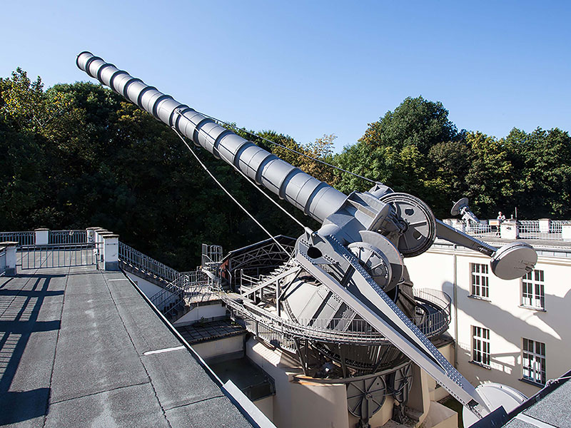 Die Archenhold-Sternwarte ist die größte und älteste Volkssternwarte Deutschlands und zählt zu den bedeutendsten wissenschaftlichen Einrichtungen ihrer Art. Ihr Zentrum bildet das 1896 errichtete Riesenfernrohr, der „Große Refraktor“, mit einer Brennweite von 21 Metern – bis heute das längste bewegliche Linsenfernrohr der Welt. Neben diesem technischen Wahrzeichen gehört auch der historische Einstein-Saal mit seiner charakteristischen Kassettendecke zu den architektonischen Highlights der Anlage. Albert Einstein präsentierte hier einst erstmals seine Allgemeine Relativitätstheorie und machte den Raum damit zu einem Ort von besonderer wissenschaftshistorischer Bedeutung.