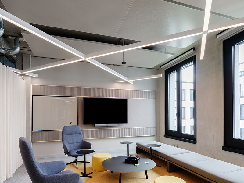 Jede Entscheidung bezüglich der Beleuchtung wurde sorgfältig mit den Architekten von Kinzo abgestimmt, um Leistung und Ambiente in Einklang zu bringen – damit die Mitarbeitenden des Büros einen Arbeitsplatz vorfinden, der Komfort, Zusammenarbeit und Identität vermittelt und dabei einen modernen Look aufweist.